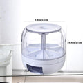 - [Multi-purpose in one machine] The rotating dry food dispenser has a capacity of 12 lbs (6 kg) of dry food, can store up to 6 different dry foods, keep your kitchen looking organized. The circular grain dispenser can hold a variety of foods, including rice, millet, black rice, barley, all kinds of rice, mung beans, red beans, all kinds of small beans, not suitable for large grains such as canned, soybeans, and beans