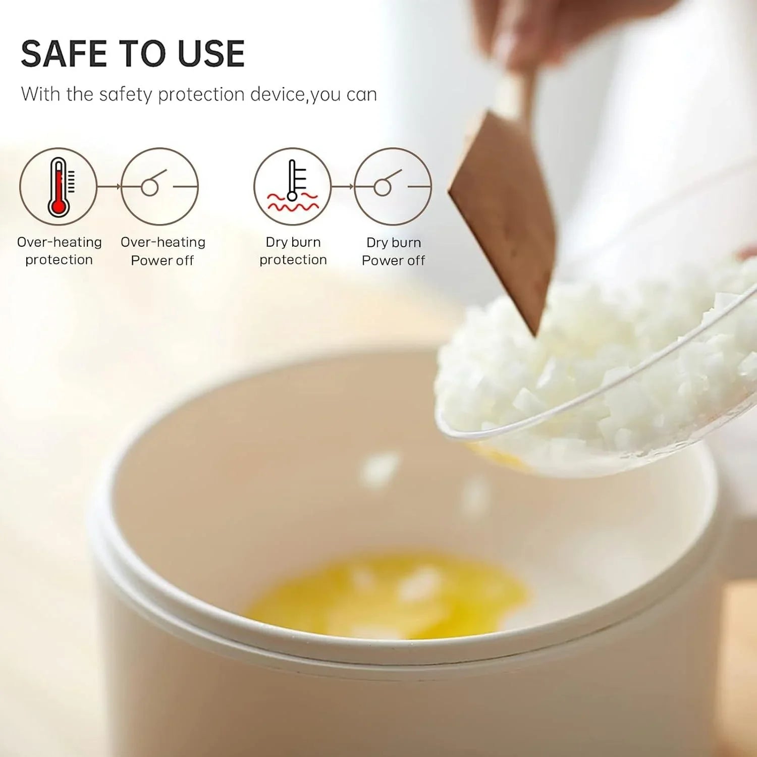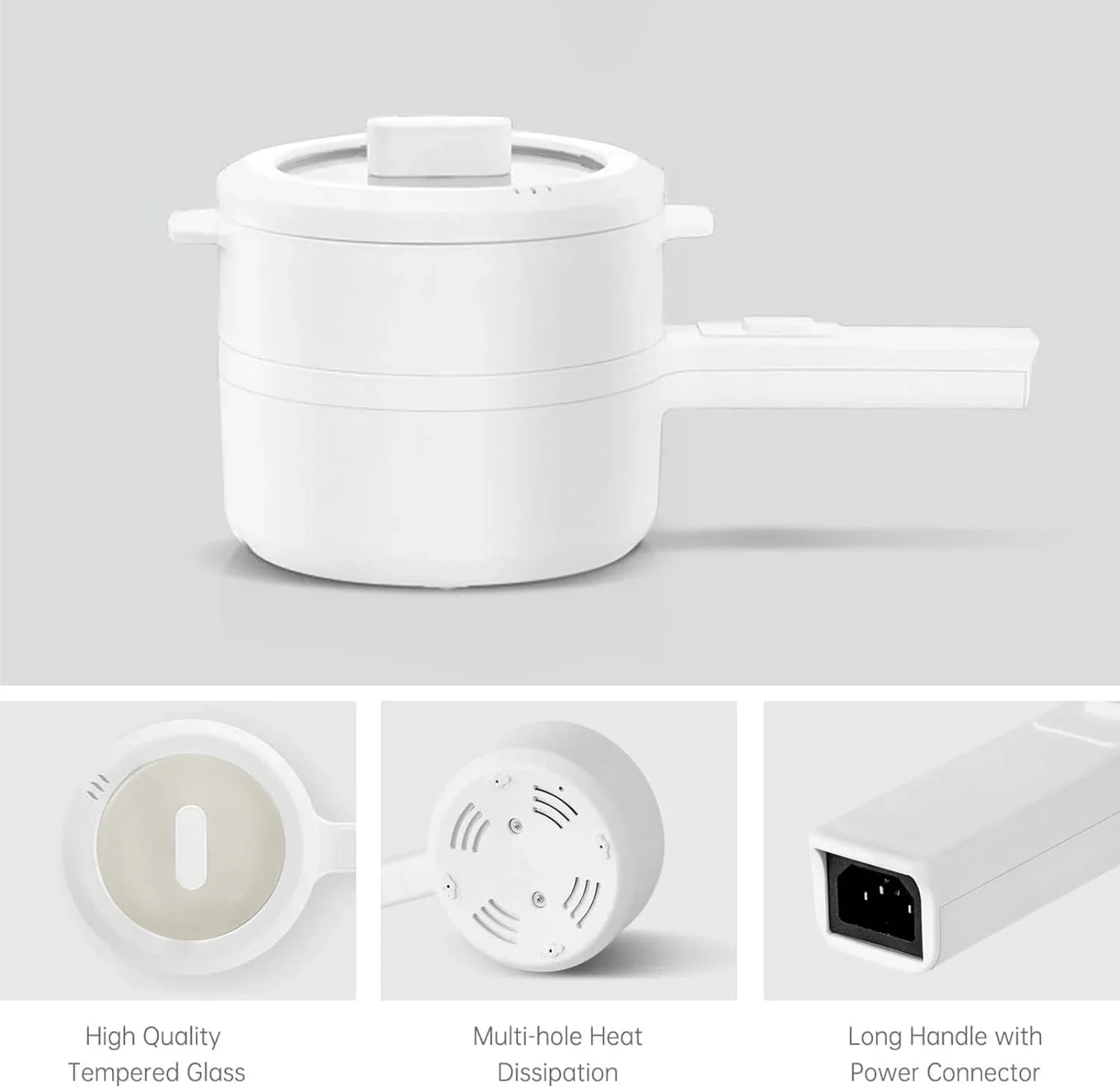 - POWERFUL AND PRACTICAL: With 700 watts of power, our upgraded electric hot pot is perfect for boiling water, hot pot, boiling noodles, ramen, eggs, oatmeal, porridge, dumplings, pasta, soup and more! Includes a steamer for eggs, vegetables, potatoes and more!