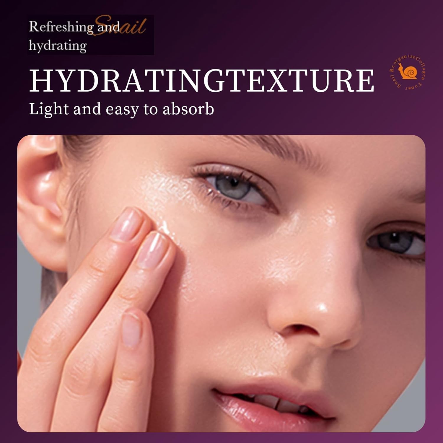 - 【𝑫𝒆𝒆𝒑 𝑴𝒐𝒊𝒔𝒕𝒖𝒓𝒊𝒛𝒂𝒕𝒊𝒐𝒏】: Start your skin care routine with our snail cleanser, which effectively cleanses the face and pores, removing impurities and preparing the skin for the next steps. Follow it up with our snail toner, which replenishes moisture, shrinks pores, and promotes smoother, more elastic skin.